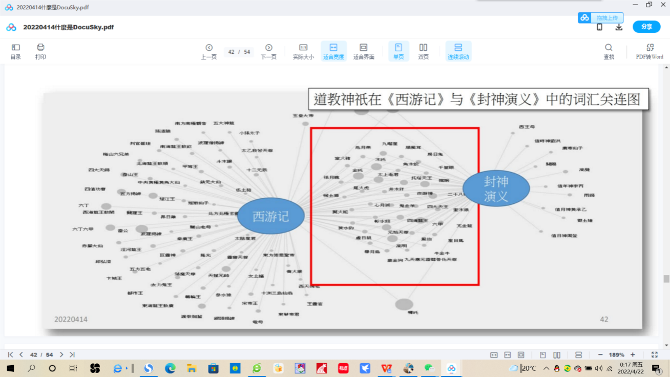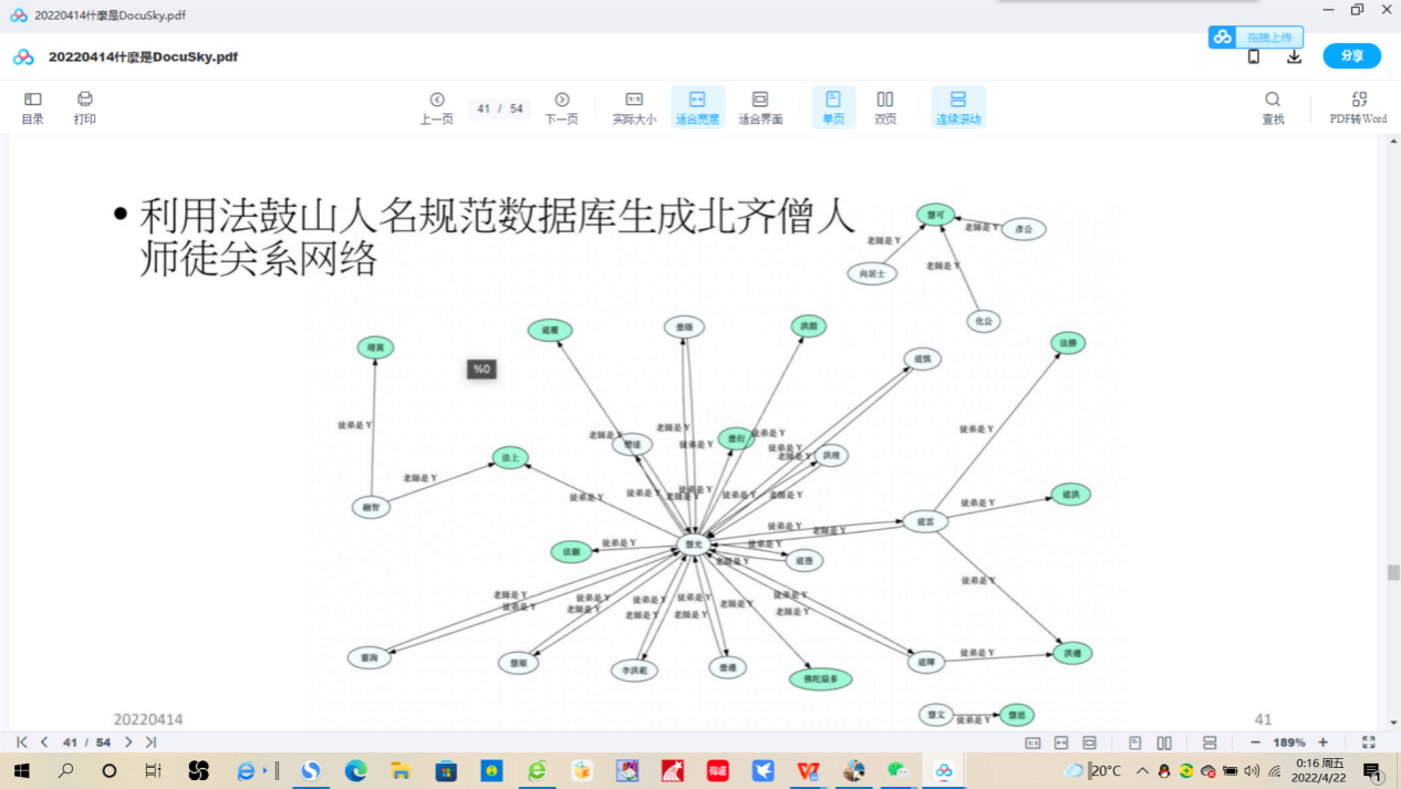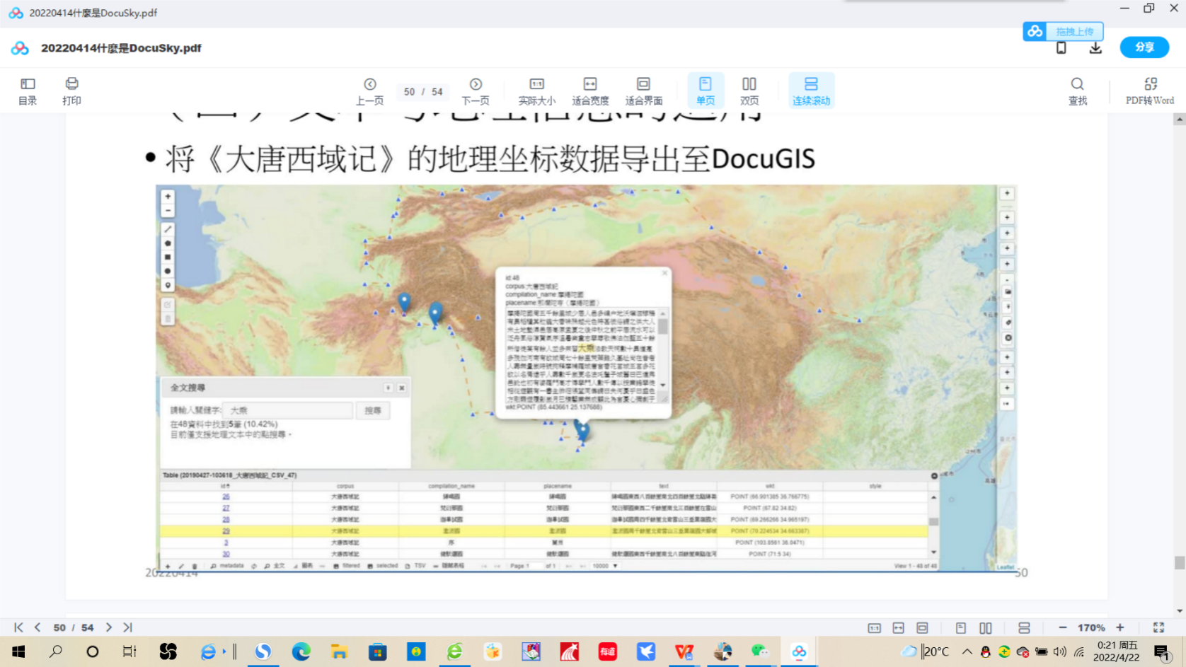 接下来的第三个议题是“DocuSky能做什么?”胡其瑞从在线取得文本与转档、文本与词汇统计分析、社会关系网络、文本与地理信息的运用四个方面,简要介绍了DocuSky的功能。