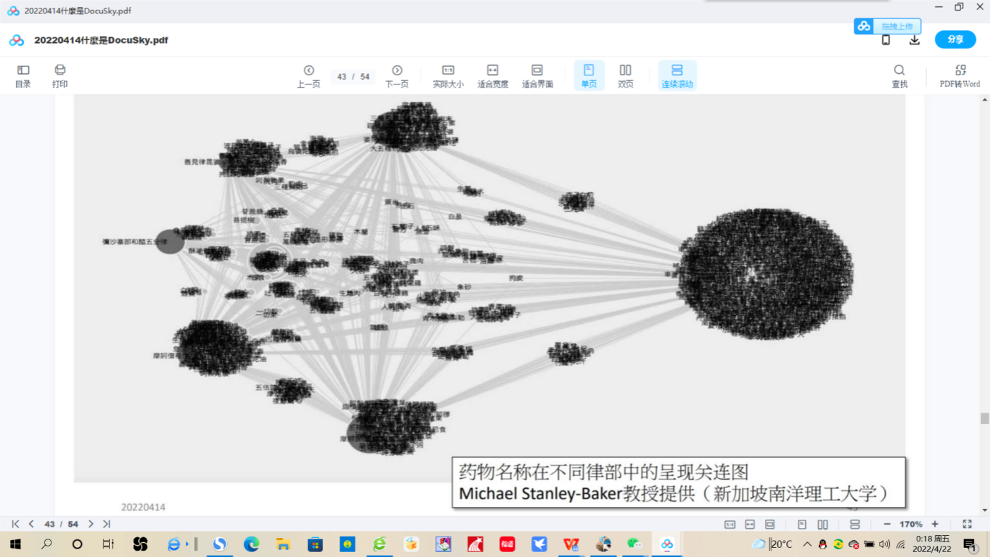 第三个常用功能是绘制社会关系网络,胡其瑞首先介绍了小世界理论,然后简要说明利用SNA工具绘制社会关系网络的基本步骤:先建立EXCEL表格并在表格中做出相应标记,然后将表格置于工具中绘制关系网络。简要说明后,胡其瑞使用SNA工具绘制了北齐僧人关系网络、道教神祗在《西游记》和《封神演义》中的词汇关联图、药物名称在不同律部中的呈现关联图等三幅关系网络图。这些范例说明了SNA工具的使用方法及其对研究的意义。