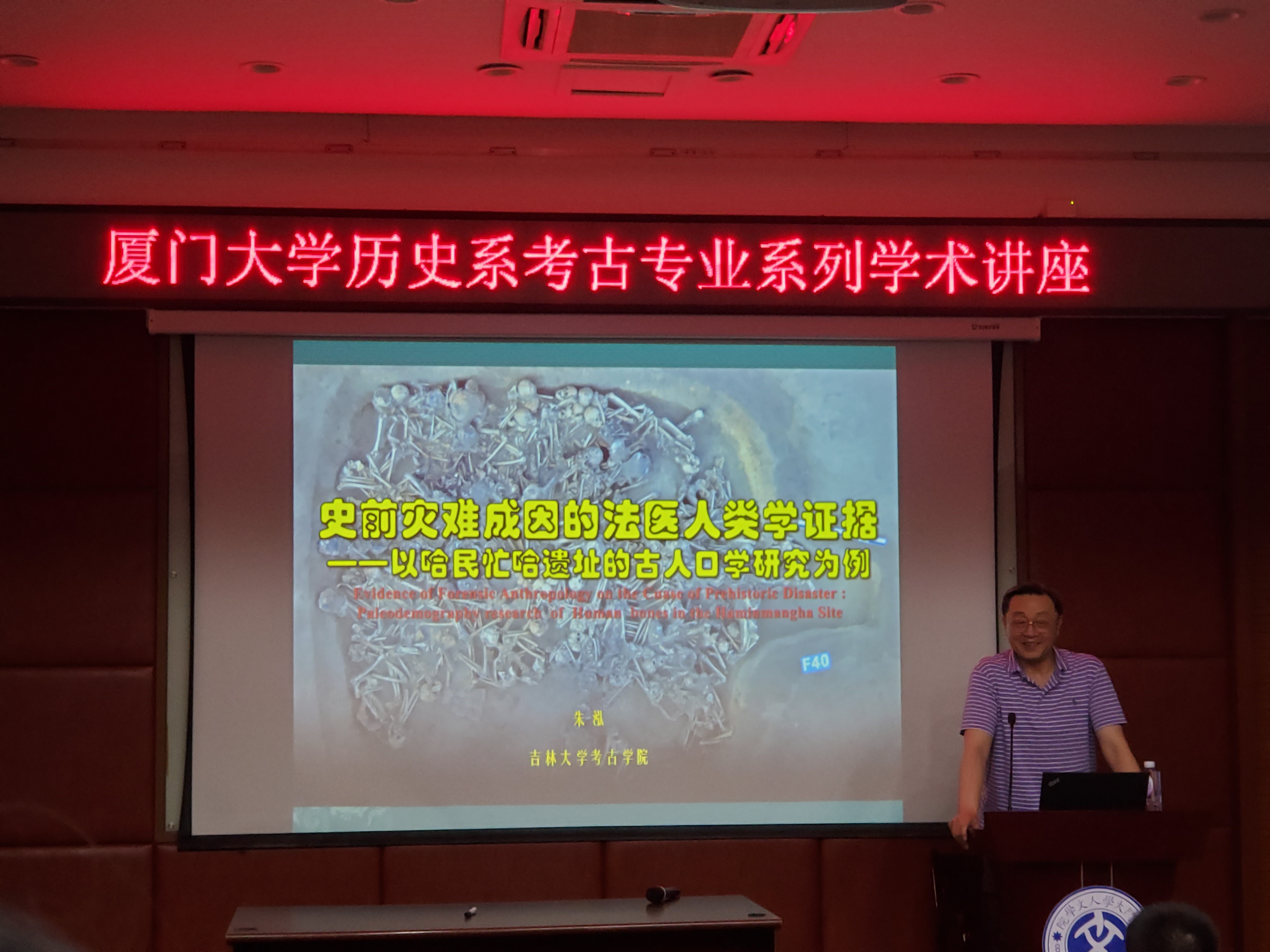 20201年5月28日晚,吉林大学匡亚明特聘教授,山东大学、内蒙古大学兼职特聘教授、教育部人文社科重点研究基地吉林大学边疆考古研究中心学术委员会主任朱泓教授在厦门大学南光-101成功举办“史前灾难成因的法医人类学证据——以哈民忙哈遗址的古人口学研究为例”的讲座。讲座由厦门大学历史系张闻捷教授主持。