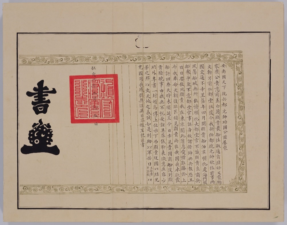 尽管日本与中国朝贡体系日渐背离,但仍然按照诸国“国王”例与安南展开交往,阮主也意识到了幕府对“日本国王”名号的主动回避,随即不称“国王”号,但自己却冒用“安南国王”,继承此号在东亚世界的政治资源和影响力。而日本和安南文书使用本国年号,则又体现了自己在明、清王朝主导的东亚世界中的自主性和独特性。