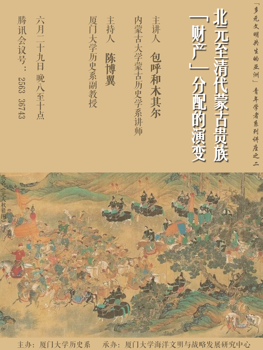 讲座预告|包呼和木其尔:北元至清代蒙古贵族“财产”分配的演变