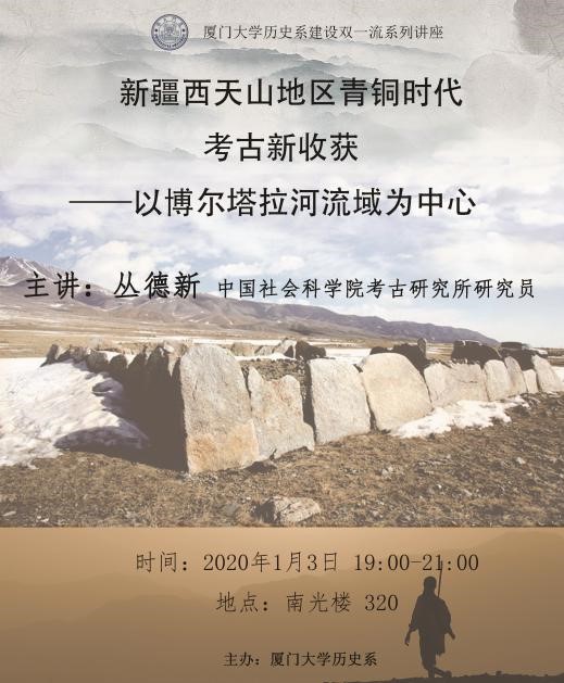 2020年1月3日晚,中国社会科学院考古研究所边疆考古研究室主任丛德新研究员在厦门大学人文学院320会议室为考古学及相关专业师生带来题为《新疆西天山地区青铜时代考古新收获——以博尔塔拉河流域为中心》的学术讲座,讲座由厦门大学历史系付琳老师主持。
