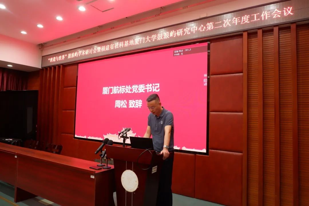 开幕式后,由 厦门大学鼓浪屿研究中心主任王日根教授 代表中心做工作汇报,王日根教授全面汇报了厦门大学鼓浪屿研究中心作为福建省社会科学研究基地的建设情况, 系统总结了该中心年度在多学科、校内外、老中青队伍整合、开展课题研究、发表论文、出版著作、开设讲座与社会服务 以及与福建省委宣传部、厦门市社会科学院、华侨大学、集美大学、厦门市鼓浪屿管委会、厦门市航标处等开展合作等方面的进展, 深刻剖析了鼓浪屿研究中心的建设意义、坚实基础以及未来的发展规划,展示了该研究中心的价值、能力与潜力,并提出了深化“世遗+”研究体系的建设目标。
