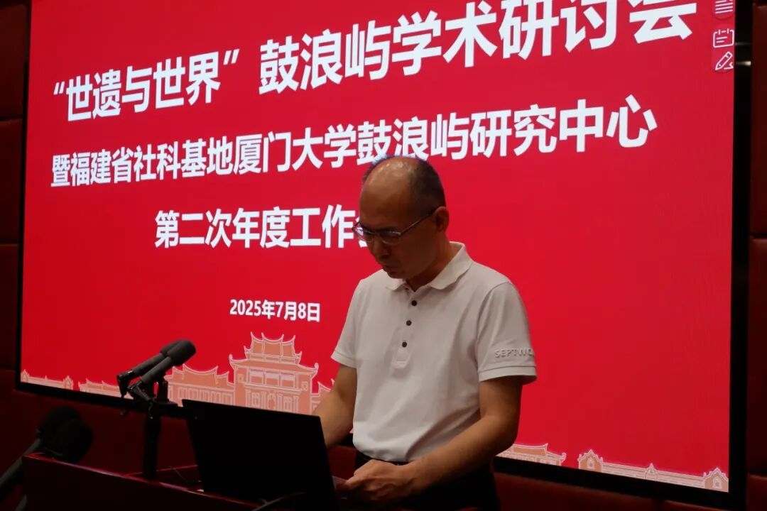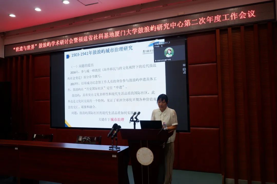 7月8日, “世遗与世界”鼓浪屿学术研讨会暨福建省社科基地厦门大学鼓浪屿研究中心第二次年度工作会议 在厦门大学南光楼101室举行。本次会议由厦门大学历史与文化遗产学院、福建社科基地厦门大学鼓浪屿研究中心主办。来自 厦门大学、华侨大学、福建省社会科学院、厦门市社会科学院、集美大学、厦门理工学院、伦敦大学、拉夫堡大学 等多所高校与科研机构的学者以及 福建闽越王城博物馆、厦门市文旅局、厦门经济特区纪念馆、厦门航标处、《福建日报》 等多家单位的专家代表相聚一堂。