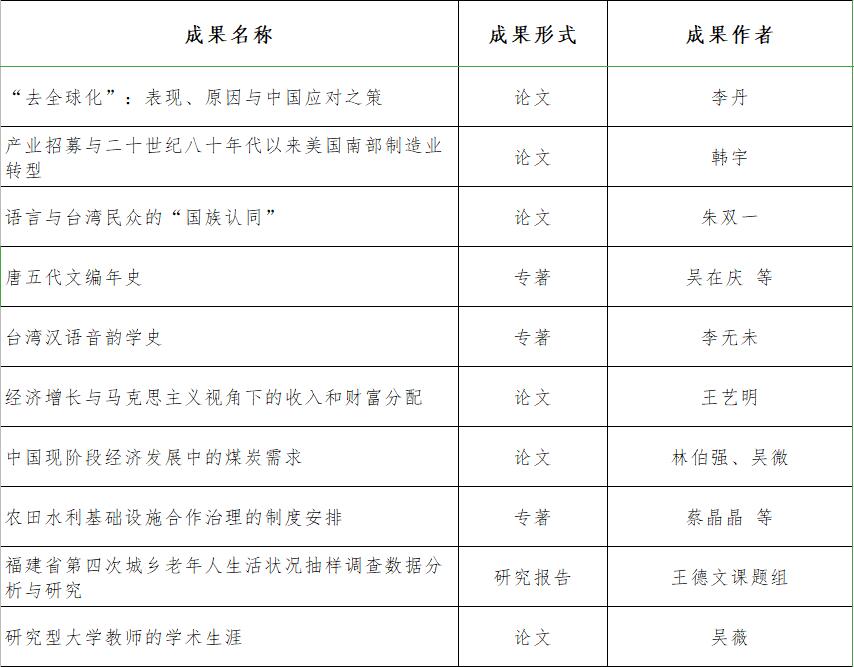 厦门市第十一次社会科学优秀成果评审,经过初评、复评和评审委员会会议审定,共评出《“去全球化”:表现、原因与中国应对之策》等148项优秀成果,其中一等奖21项、二等奖43项、三等奖84项。