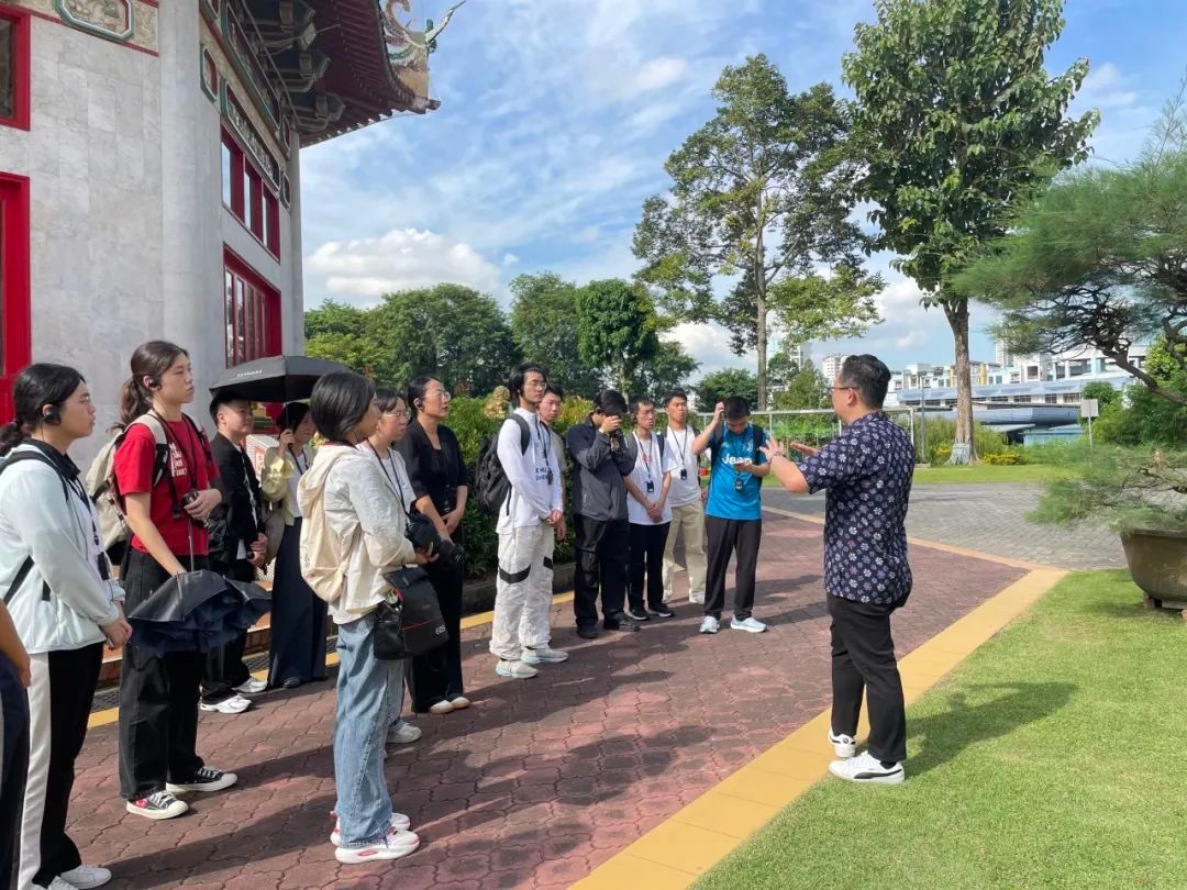 随后,实践队首先参观了粤海清庙。该庙始建自19世纪20年代,在填海造陆之前靠近海岸,为当时潮汕海员商贾答谢神明保佑平安之场所。由此,该庙安奉“天后”妈祖与玄天上帝。其后,蔡志祥教授向同学们简要介绍了此类庙宇的社会运行和管理机制。郭根维教授讲述了英国通过介入柔佛王国王位争夺控制新加坡的历史背景以及英荷殖民势力对武吉斯人的争取、华人族群远早于英荷在海峡地区繁衍生息从事经济活动的历史。