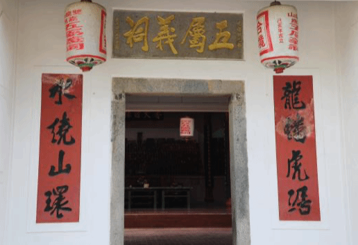 双龙山嘉应五属义祠,1887年由原籍广东嘉应州(今属梅州地区)的五县客家人共同筹建。祠堂前置半月池,为新加坡现存唯一的客家风水池,其弧形格局用于“蓄水聚气”,有助财富与气运积聚。池水与后方化胎构成太极阴阳符号——池属阴代表水,化胎属阳象征山。祠后设置的化胎土丘,其半球外型象征龙脉的孕育与稳定,可引导“龙气”贯通祠堂主轴,意蕴推动宗族的繁衍与长久。