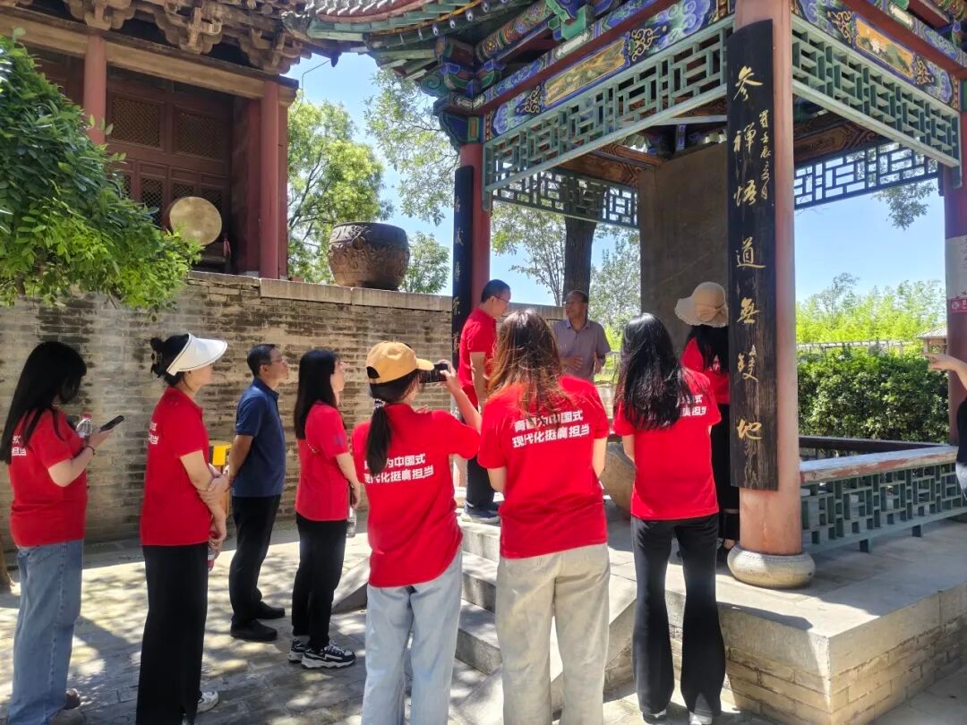 实践队一行前往“关庙之祖、武庙之冠”的解州关帝祖庙,领悟关公忠义情怀。关帝祖庙始建于隋,鼎盛于明清,以“前朝后寝”的宫廷规制奠定了武庙的最高范式,是全国现存规制最高、面积最大、历史最久且保存最完整的关帝祖庭。队员们沿着青石板路,从结义园到春秋楼,细品人们对关公的敬仰与祈愿。目前关帝祖庙已经发展成全国最大的关公文化旅游区,沉浸式讲解的设计、关公文化戏曲表演等众多方式传承和保护着关公文化。文物化身为戏曲舞台,百年香炉仍然烟雾缭绕。关帝祖庙的文物工作者真正将文物的保护与利用结合起来,经历千年的文物仍然在高速发展的现代社会发挥自己的作用,让人们在日常生活的使用中自觉保护文物,使文物真正“活”起来。