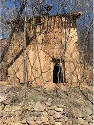 早些年前,乡村人民的生计手段可谓十分广泛,除了传统的农耕、畜牧和手工外,还有一些令我觉得新鲜不已的产业。在和小姑一起走在村里时,我见到了路旁有一座奇怪的土房建筑,不像我以前所见的居住或做饭的土房,它显得又高又瘦,门也十分狭小。小姑告诉我那是烟炕,以前大家会种植烟草,拿到烟炕里熏。从外面看,烟炕大概有三四米高,而窄门则只有一米不到的高度。我跳进窄门内,发现墙壁左右横贯着一根一根的木头。而房顶则开了一个小天窗,据说是用来散烟雾的。烟炕侧边的三米处设置了一个小窗口,则是为了观察烟草熏制的程度。