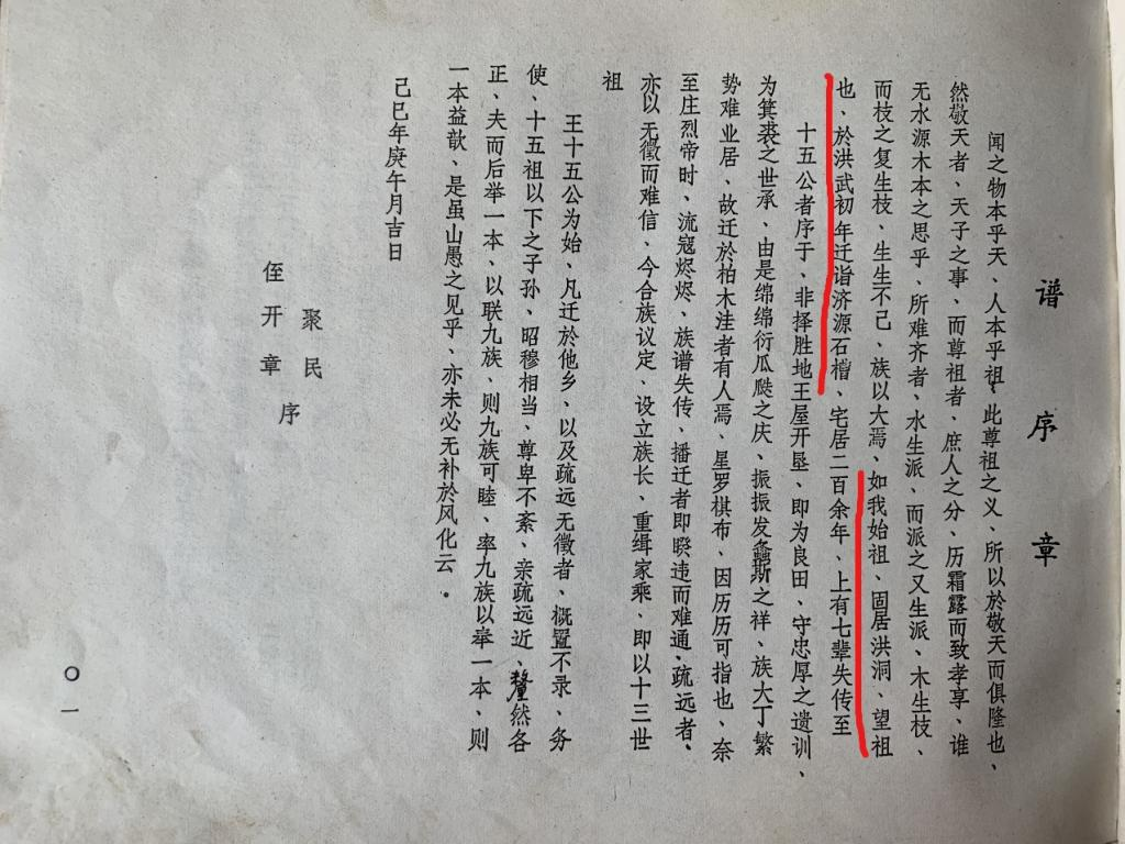 在老家翻出了以前曾看过的家谱,最初翻到时发现是92年的印刷品,似乎并不古老,便顿感无趣。后来听我奶奶回忆说家里以前还有一本纯手写毛笔字制作的老家谱,可惜文革的时候,听说要“除四旧”,就赶紧把老家谱塞到了草场的草垛里。后来二爷拿回了他家,自此便没有再见过了。如今沮丧地翻开新家谱的序言,上面还是以前我第一次看时圈画的字词——当时画出来主要是为了嘲笑家谱里附会名人和重大历史事件的言语,颇有些戏谑意,倒没有关注别的内容了。这次重新翻看,才发现了许多有趣的事情。