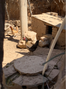 院子里的角落也常常有着一个鸡窝,有些人家的院子里还会拴着一只跃跃欲试、会冲着每个路过的陌生人叫唤的土狗。猫咪则是杳无踪影的,只有在晚上他们才会结束一天的冒险跳回屋内跟主人打个招呼,然后继续出门流浪。猪圈一般在院子外面,凑近时常常能听到哼噜哼噜的声音和臭烘烘的气味。牛槽的位置最不固定,有些在院子里,有些在村里某处,有些则在自家田地的周围。