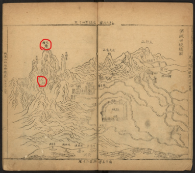 乾隆27年本《济源县志》所录济源四境图。王屋山在济源市的西北部,最高峰处名为“天坛”,相传为黄帝祭天之处,故名此。