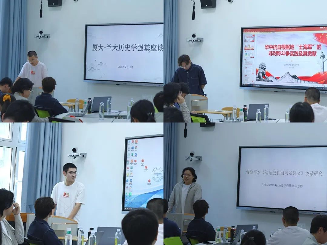 学术分享是本次座谈会的核心部分。兰大2024级历史强基班的张恩帅同学首先发言,他汇报了自己对敦煌写本《结坛散食回向发愿文》的校录研究。他以文本为切入点,通过对现有文献的整理与分析,深入探讨了古代敦煌的佛教仪轨。陈钟彦同学则分享了“华中抗日根据地‘土海军’的非对称斗争实践及其贡献”的研究成果。