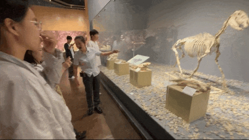 7月13日,第六天的田野考察,在被誉为“古生物的伊甸园”的和政古动物化石博物馆开启。和政位于青藏高原与黄土高原交汇地带,是世界上重要的哺乳动物化石产地之一。展厅里陈列的各组古动物化石,静默地记录着从晚渐新世到早更新世的气候变迁和动物群演替。我们在这里走近四大动物群,细细观摩巨犀、铲齿象、三趾马与真马的化石遗骸,了解和政古动物化石的“十大之最”,感受亿万年时光的厚重,也体悟着在时间中凝固的生命所展现的自然伟力。