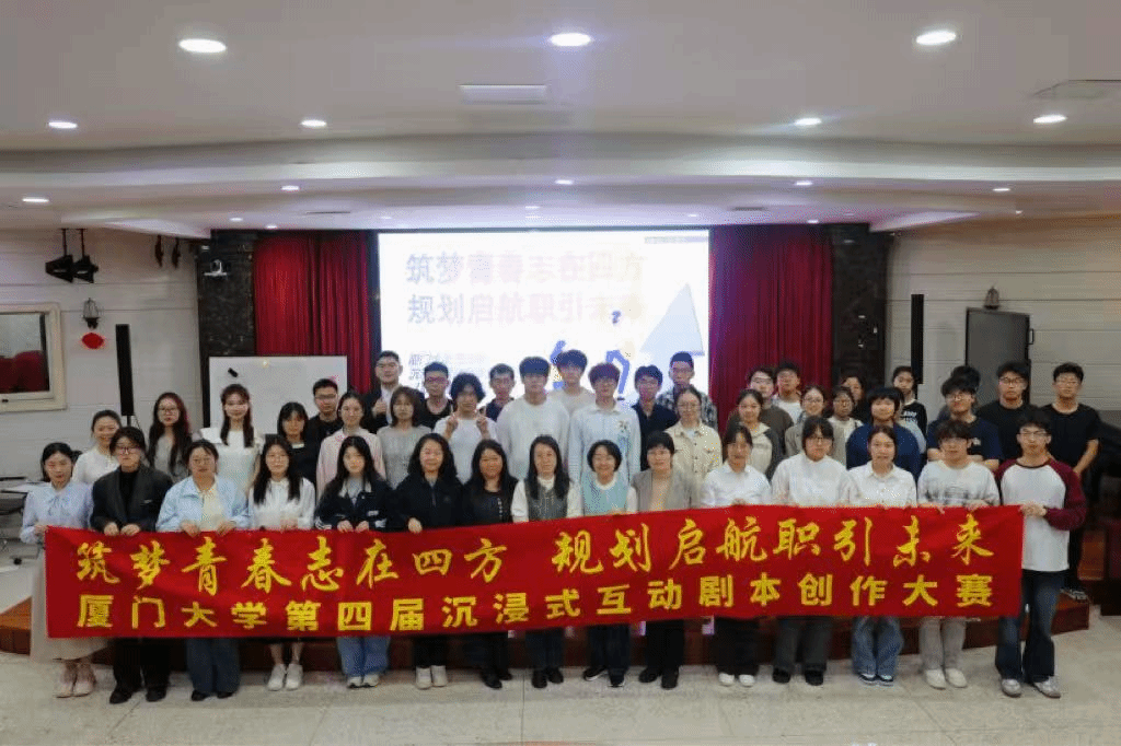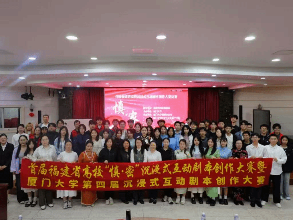 4月4日,厦门大学第四届沉浸式互动剧本创作大赛复赛在联兴楼104报告厅举行。从初赛中脱颖而出的34支参赛队伍同台竞技,以剧本为载体,围绕红色保密与职业生涯两大主题,展开了一场思想与艺术交融的精彩展演。