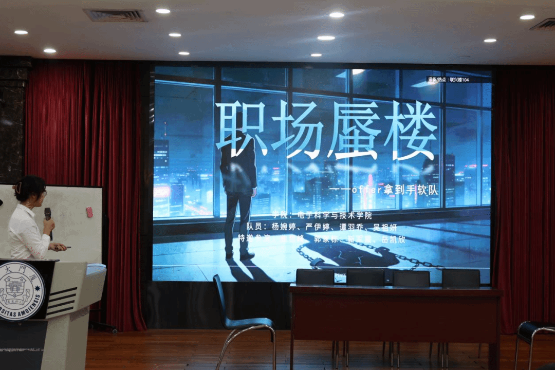 下午14时,厦门大学第四届沉浸式互动剧本创作大赛职业生涯赛道复赛接续举行。参赛队伍聚焦职场成长与生涯规划,带来多样职业人生。《十字路口·昨日之海》探讨大学生在高压下的自我接纳;《巅峰营的救赎》直面职场初心与利益纠葛;《清醒计划》描绘未来职场中的清醒抉择;《深蓝之烬》围绕科研诚信与资本博弈展开。《消失的“它”——职业十字路》《动如参商》《闻香识途》《破茧实习生》《衡镜律所:星瀚泄密案》《天海》《第七个返乡人》《黑马计划》《令人心痛的offer》《职场蜃楼》《理想主义者之环:职场突围》《职场风云:黎明后的星图》《从笔墨到国风帝国》等作品轮番登场,直面内卷、底线、梦想与现实,展现出新青年们对职业世界的深刻思考。