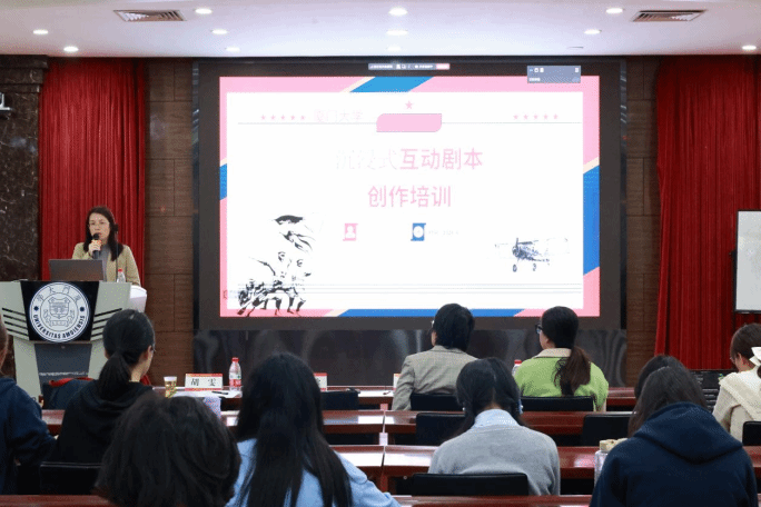 3月28日,首届福建省高校“慎·密”沉浸式互动剧本创作大赛暨厦门大学第四届沉浸式互动剧本创作大赛培训会于联兴楼104报告厅举行。培训采用线上线下结合的方式,来自华侨大学、福州大学、集美大学、福建师范大学、福建农林大学、福建医科大学、福建理工大学、闽南师范大学、宁德师范大学、闽江大学、福建商学院、武夷学院等十余所高校队伍线上参加培训,来自厦门大学的38支复赛队伍齐聚线下会场,共同解锁沉浸式剧本创作的“通关秘籍”。