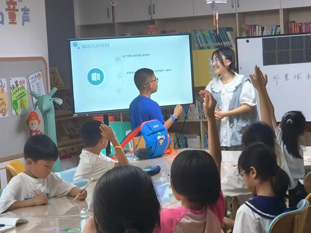 “小朋友们,你们相信外星人存在吗?”志愿者老师抛出的这个问题瞬间点燃了孩子们的好奇心。一双双明亮的眼睛闪烁着对未知世界的渴望,孩子们迫不及待地分享着自己的奇思妙想。随后,老师通过生动的讲解,带领孩子们走进了《笑猫日记·从外星球来的孩子》的世界。在这个奇妙的故事中,孩子们跟随笑猫、胖头、二丫和三宝的脚步,开启了一场充满奇幻与冒险的旅程。
