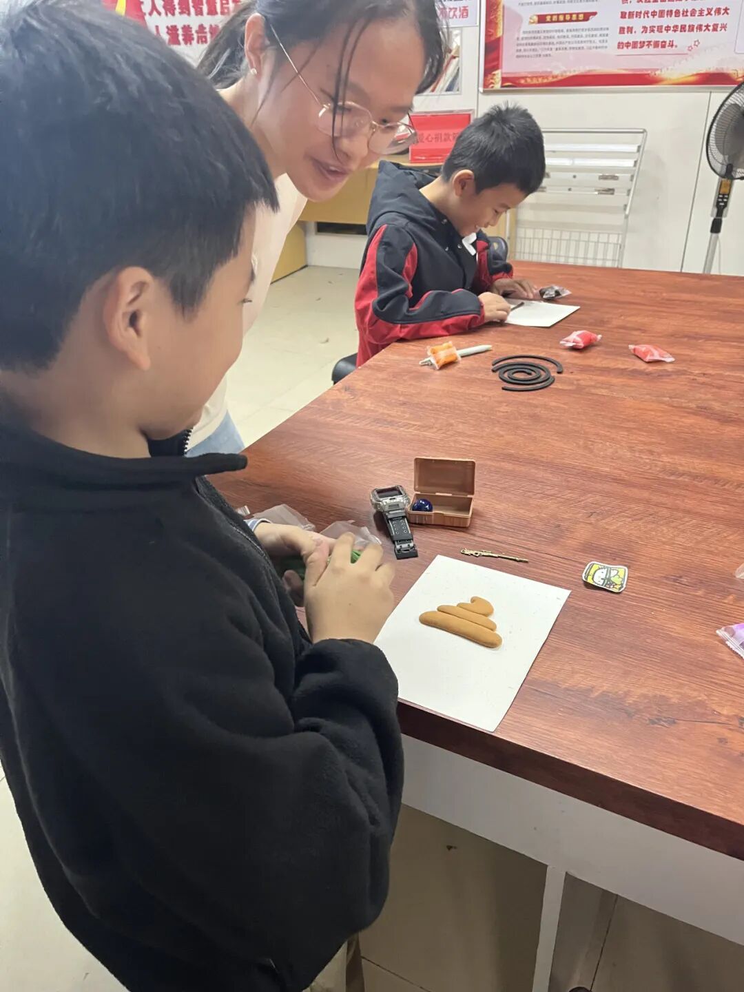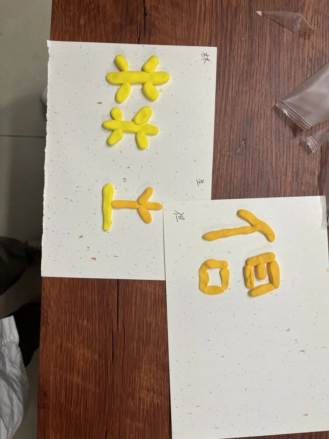 第14期课堂的主题是《汉字的寻根之旅——甲骨文趣味小课堂》,主讲老师热情洋溢,为小朋友们带来了收获满满的一节课。首先,老师通过对比古今记录生活方式的不同,引出了刻在龟甲兽骨上的神秘文字——甲骨文,并介绍了其占卜记事的历史背景。接着,老师深入浅出地讲解了汉字的“六书”构造,重点介绍了象形、指事、会意、形声四种造字方法,小朋友们对着“日、月、水、山”等象形字展开了热烈的猜字互动。课堂后半部分,进入了有趣的创作环节。老师指导大家利用黏土,在白纸上亲手捏造出“甘”“竹”“雨”等甲骨文字形。最后,课堂在孩子们的欢声笑语中结束。通过老师的讲解与动手实践,小朋友们领略了汉字演变的奥秘,感受到了中华先民伟大的智慧。