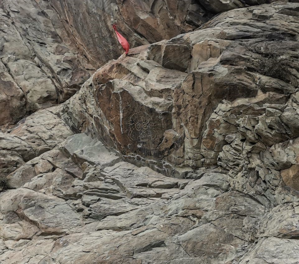 当天下午,师生们还参观了贺兰山岩画。岁月失语,唯石能言。岩画虽然构图简单、线条粗犷,但又形象灵动。其中有人面像,有动物像,还有一些“符号”,或是反映了狩猎的场景,或是再现了仪式的现场。岩画的内容和表现手法极为广泛,反映了古代先民的生活状况和图腾信仰,引发人们无限的畅想。其中最著名的是“太阳神”岩画,它将人面像和抽象的太阳光芒相结合,描绘了远古人的信仰崇拜。除了精彩的岩画,瑰丽的大山奇石、飞湍的泉流瀑布、斑驳的明代水关,都吸引着大家的目光。不时现身的岩羊,如精灵般在岩间穿梭,引得大家惊叹。