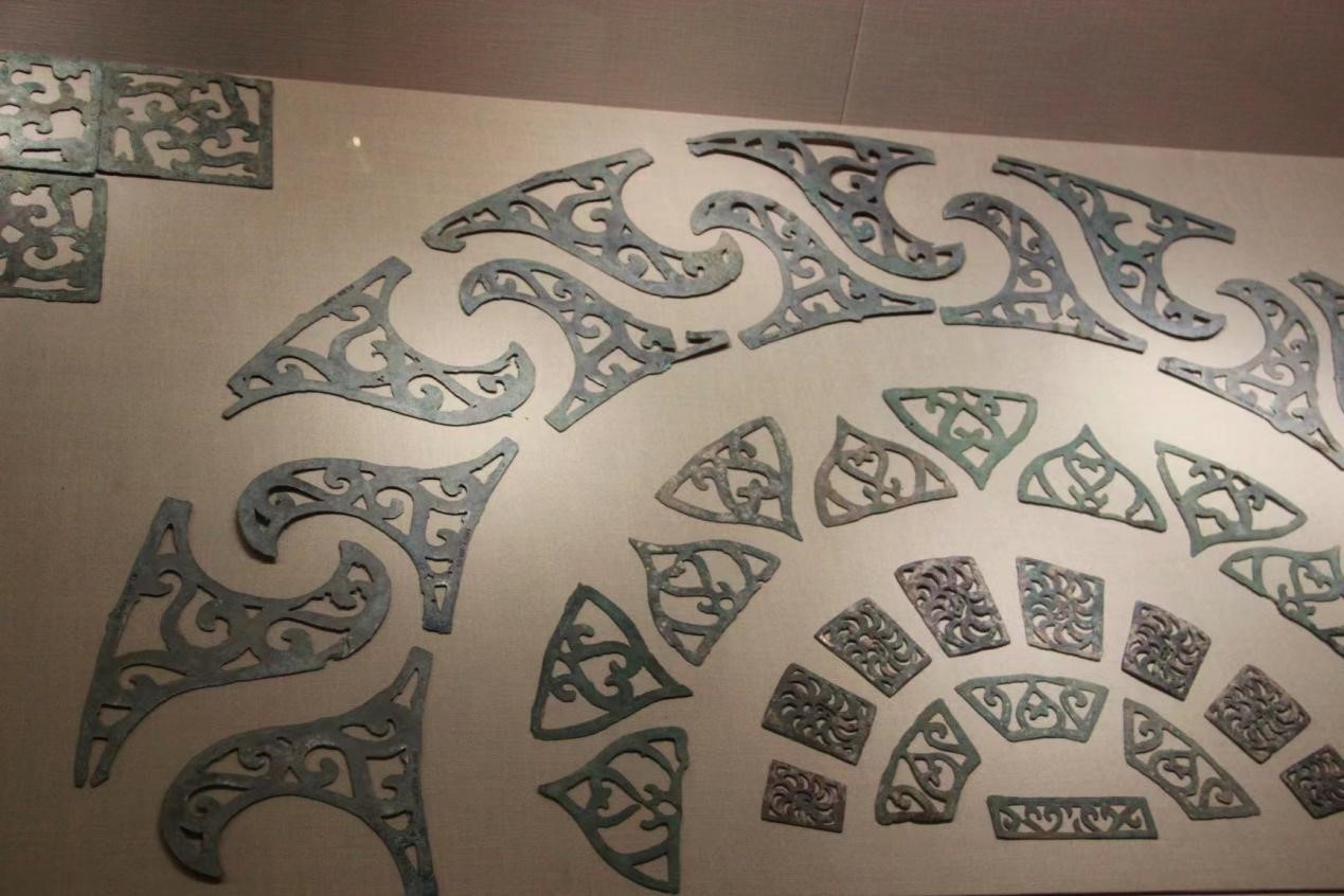 28日上午,考察团参观了宁夏博物馆。博物馆分为通史展览和专题展览。通史展览分为“文明曙光”“西戎春秋”“帝都藩屏”“丝路重镇”“大夏寻踪”“塞北江南”六个篇章。博物馆展出文物共计1083件,其中一级文物114件,以丰富的文物、无声的语言,讲述了宁夏数万年来各民族创造的辉煌历史和文化。考察团见到了宁夏博物馆的三大镇馆之宝:鎏金铜牛、力士志文支座、石刻胡旋舞墓门,其中前两者与西夏王陵有着很深的渊源。随队教师介绍了汉画像的叙事结构、榆林窟壁画的制作,萧关道的历史、丝绸之路的贸易等。“石刻史书”“红旗漫卷”等专题展览,或与贺兰山岩画相照应,以大量实物、拓片、照片等传递了岩画所蕴含的丰富信息,或坚持红色底蕴,展出革命前辈在宁夏留下的珍贵革命历史文物。
