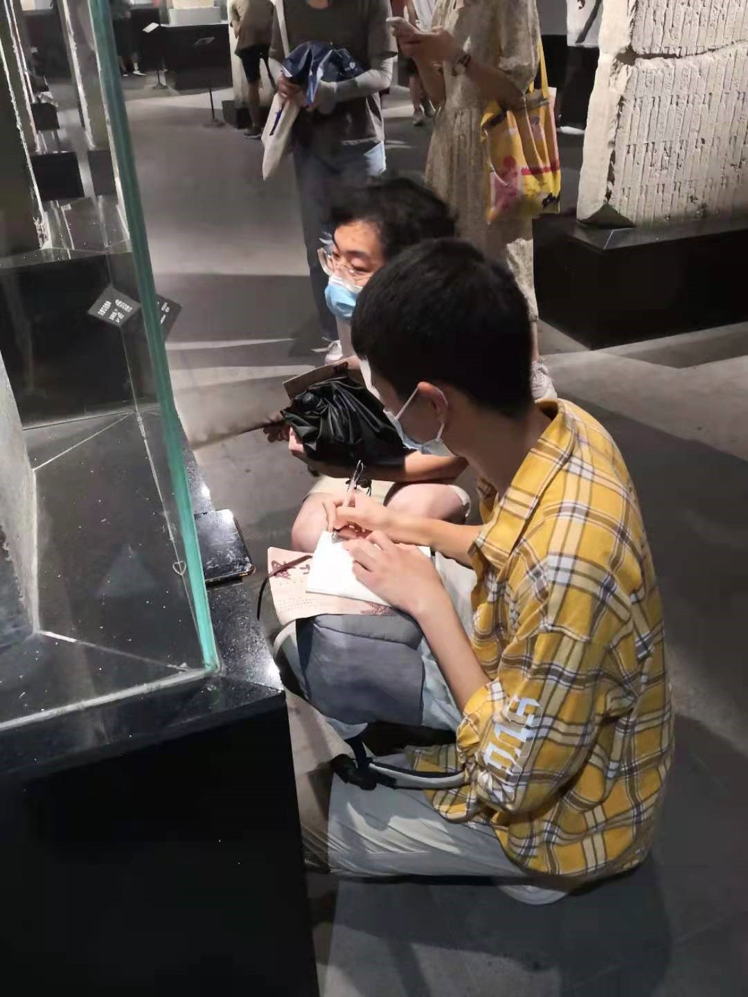 29日上午,师生一行返回西安,前往碑林博物馆参观。碑林在古碑林的基础上,利用西安孔庙古建筑群扩建而成,由孔庙、碑林、石刻艺术室三部分组成,集中了11000余件文物。其中处于中央的,便是唐玄宗李隆基在天宝四年作序、注释并亲笔书写的《石台孝经》。在丛立如林的碑石、墓志之中,同学们没有走马观花,而是按照随队教师的叮嘱,选取了自己感兴趣的碑刻加以仔细的辨认和抄写,以作史学基本功的相关训练。