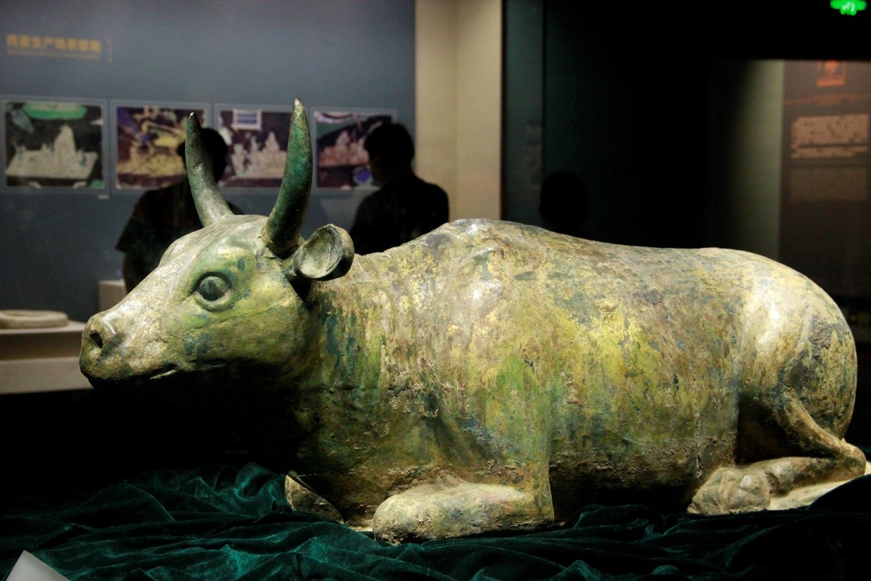 1977年西夏陵区出土的鎏金铜牛(规格:120cm*38cm*45cm)