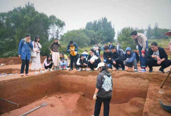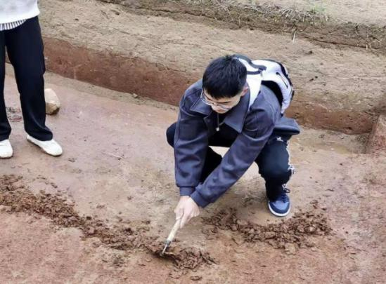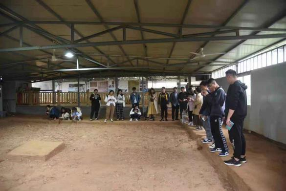 同学们接着参观了龟山遗址考古现场展示区、正在发掘的榕山遗址考古现场以及现在已经回填了的壳丘头遗址。在龟山遗址,我们观察到排列规律柱洞,揭露出部落遗址的大致布局。值得注意的是,探方呈阶梯状分布,靠近入口的一排探方只发掘到第一层、第二层,靠后的探方发掘得更深,到第三层、第四层。我们参观了当时人们的生活垃圾坑——灰坑。龟山遗址的灰坑以贝类为主,推测可能是当时人们食用后的贝壳堆。龟山遗址现场还有大量的碎陶瓷片分布。对此,老师们解释有几种可能:一是制瓷厂的遗址,二是居住舍弃物的痕迹,也有可能是出于某种宗教仪式,集体打碎了一批陶瓷置于此。在东花丘遗址现场,引起我们注意的是作为划分不同时期的地层线。上方地层是清代墓葬,在更加久远的地层发现了新石器时期的陶片。划分地层线的依据有地层的土质、土色与出土物,其中土层的颜色尤为重要。考古专业的学长学姐们还为我们介绍了通过井边缘的土质与井洞本身土质不同来寻找井的边缘的过程。一些被发掘出来的陶片保留在了原处,在向下发掘时避开了陶片正下方的部分,像支柱一样将陶片支撑起来,保留在原处。另外,因为年代久远与长期埋藏,许多陶片在被发现时已经变得十分易碎,需要用胶水加固后才能继续发掘。陶片发掘后,要带到指定的地方进行清洗、晾晒,所有的陶片要按类型、按顺序排列,装陶片的袋子上要用编号记录好发掘的时间、地点、地层与发掘者的姓名,一天工作结束后要将陶片放回袋中。在东花丘遗址,我们还亲身体验考古发掘工作,了解到划分地层线的重要性。