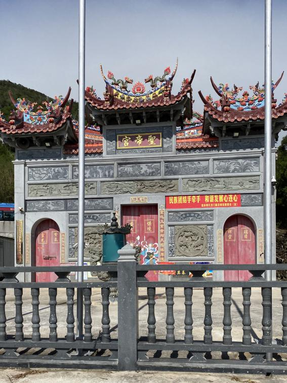 11月22日,同学们来到了以老石厝闻名的北港村。在此次参观中,除了被其秀丽的自然风光和整洁的村容村貌所惊艳外,我们也留意到了北港村的不同之处。一是北港村的石厝屋房顶几乎不出檐,每一块瓦片上都用石头压着,墙壁是由大块不规则石头加上泥沙堆砌而成,成人字形墙,有利于防风。这样的建筑特色与北港村位居湾海地区,全年7级以上大风日数为125天,是福建省强风区之一的地理位置有着密切关系。在探访北港村的过程中,同学们找到了圣帝宫、大王宫、马祖宫、基督堂。其宗教信仰的多元性反映了其自古以来文化交流的频繁性。其中在对代表海洋崇拜的马祖宫与代表陆地崇拜的大王宫进贡品、香炉、庙宇新旧程度、以及当地人了解程度中,我们发现大王宫的受重视程度远大于马祖宫。通过圣帝宫的鱼、龙、海洋装饰可知,古时北港村的主要经济模式应为海洋经济。进入现代社会,大量青壮年人口外迁,北港村形成了以第三产业为主、第一产业为辅的经济模式。“马祖宫”的景象,从侧面印证了妈祖信仰的式微。以“大王宫”为代表的陆地崇拜,也许是当地人对旅游业能够发达的憧憬,也许是对亲人外出平安的期望……总而言之,当地人的生活目的的改变,造成了宗教信仰方面的改变。