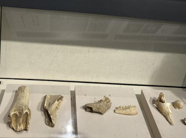 同学们先到南岛语族考古研究基地,参观了平潭史前文物陈列室和海丝遗珍展厅,了解到平潭的地理位置、平潭史前文化发展的序列等。平潭古称海山、海坛,千百年来岛民在此渔耕,繁衍生息。我们了解到平潭县岛屿多,境内地势低平,中部略高,地形以海积平原为主,南北有孤丘,海岸曲折蜿蜒。三十六脚湖,是福建省最大的天然淡水湖。海岸线蜿蜒曲折,沿岸海域广阔。平潭文化发韧于“壳丘头文化”,自此展开了7000余年海岛文明薪火相承的历史篇章。从“贝丘文化”“舟楫文化”“渔猎文化”等海洋文明,到后来移民迁徙带来的中原“河洛文化”,造就了平潭在繁华的海上丝绸之路中的重要通衢。