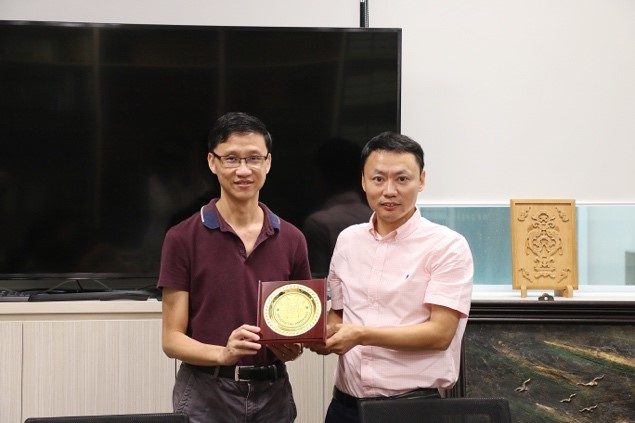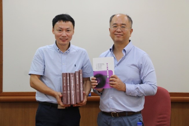 午休后,一行人又回到华裔馆,南大中文系系主任、华裔馆馆长游俊豪教授为同学们作了一场别开生面的报告,《华人研究国际学报》责任编辑张惠梅女士与会。报告开始前,水海刚老师向南洋理工大学中文系与华裔馆赠送图书和纪念品,祝愿两校两系友谊长存。