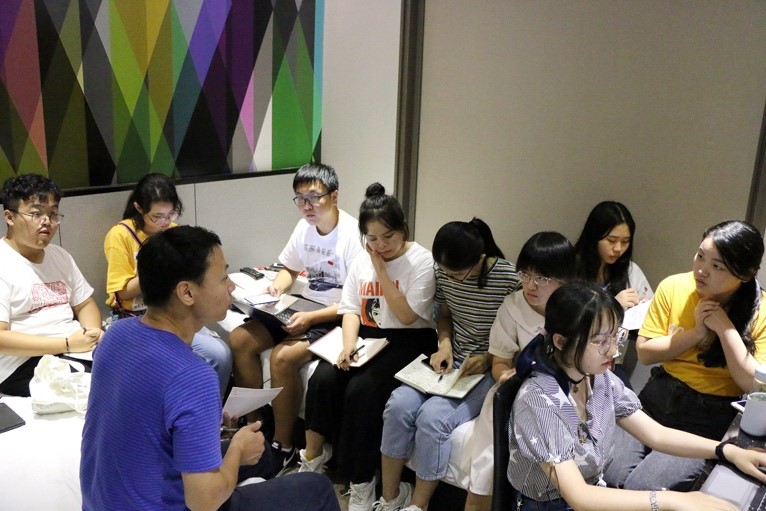 考察过程中,结束每一日的行程回到酒店之后,同学们都会按照分组就各组课题轮流进行交流总结与汇报展示,两位老师也根据各段行程中所得对同学们的汇报提出了评价与建议。