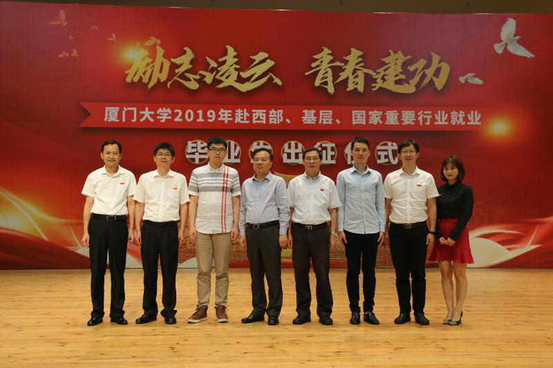 6月5日下午,我校2019年赴西部、基层、国家重要行业就业毕业生出征仪式在科学艺术中心举行,校党委书记张彦,校党委副书记、副校长李建发,校党委常委、宣传部部长、教师工作部长徐进功,校党委常委、组织部部长、统战部部长孙理出席。学生工作部长李峰主持仪式。